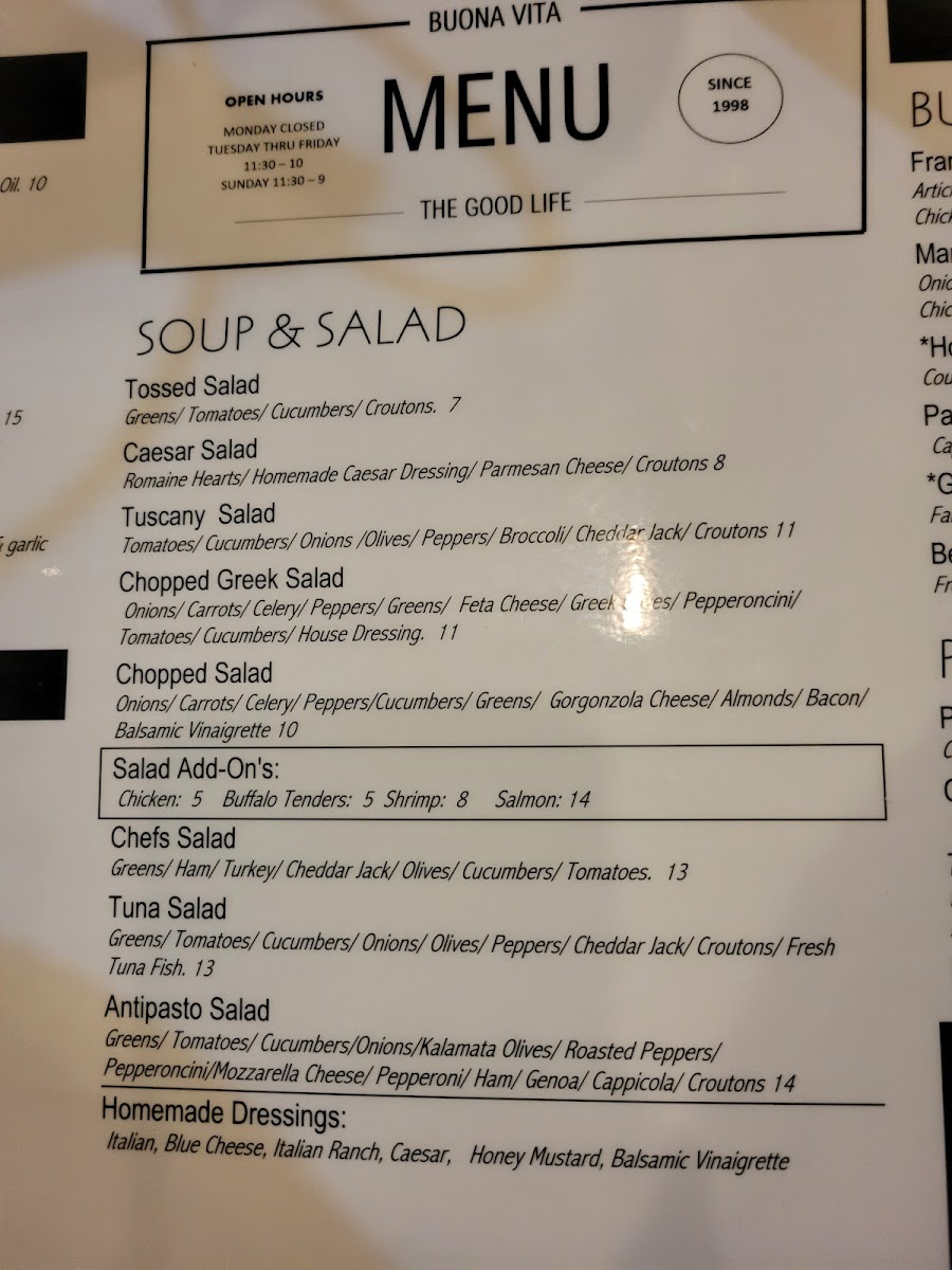 If you're craving a cozy, authentic Italian meal, look no further than the Buona Vita Menu at 284 N Maple St, Enfield, CT. This charming spot is where traditional flavors meet modern touches. Whether you're in the mood for a classic pasta dish, a wood-fired pizza, or something a bit more adventurous, the menu has something to satisfy every palate.